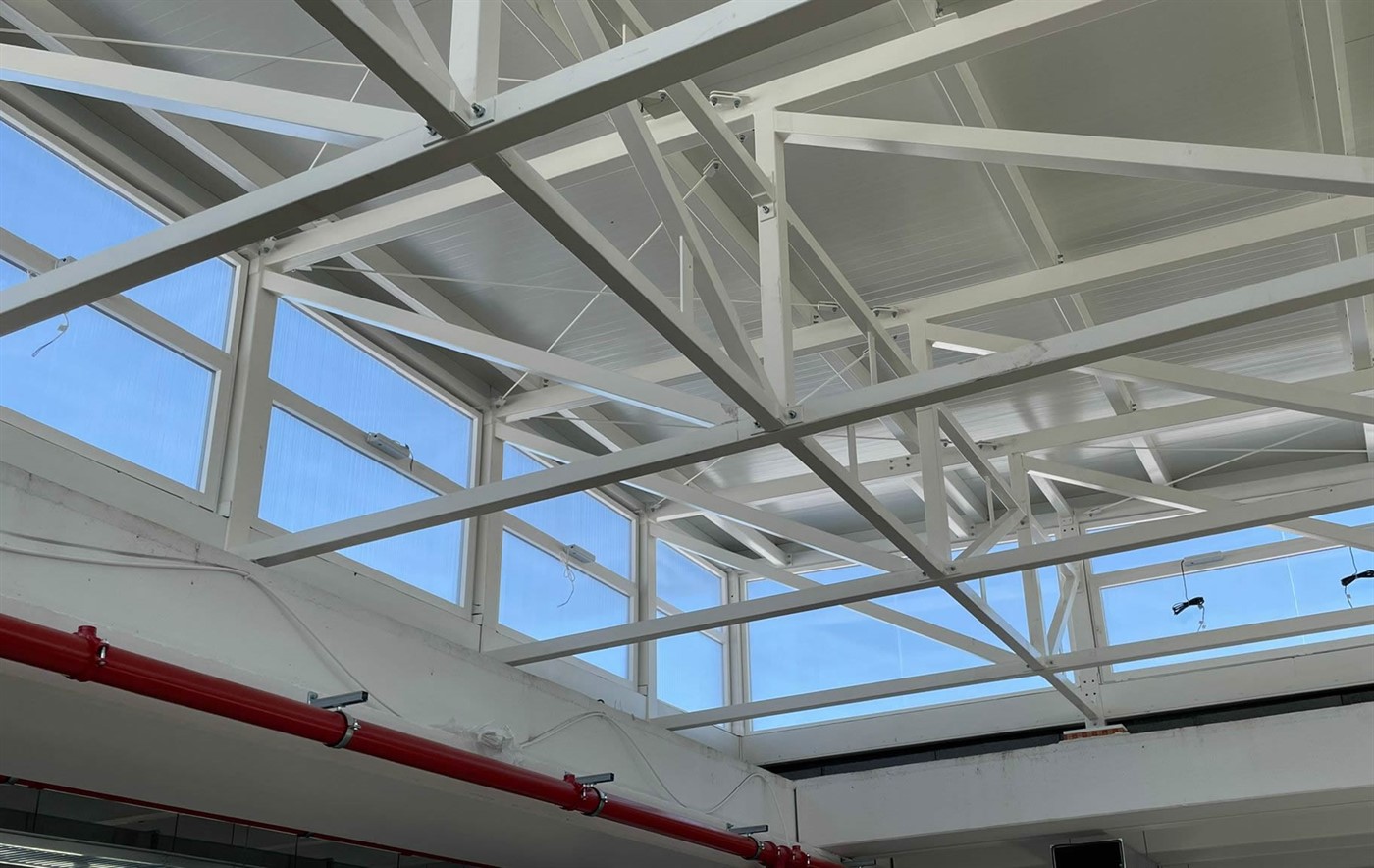 Il progetto ha interessato calcolo e design di opere di completamento quali lanterne, pensiline e tettoie. Una particolare caratteristica della commessa è stata la necessità di integrate le strutture metalliche con il prefabbricato di calcestruzzo, e la volontà del Committente di ottenere finiture di pregio sui rivestimenti in alluminio-polimero.